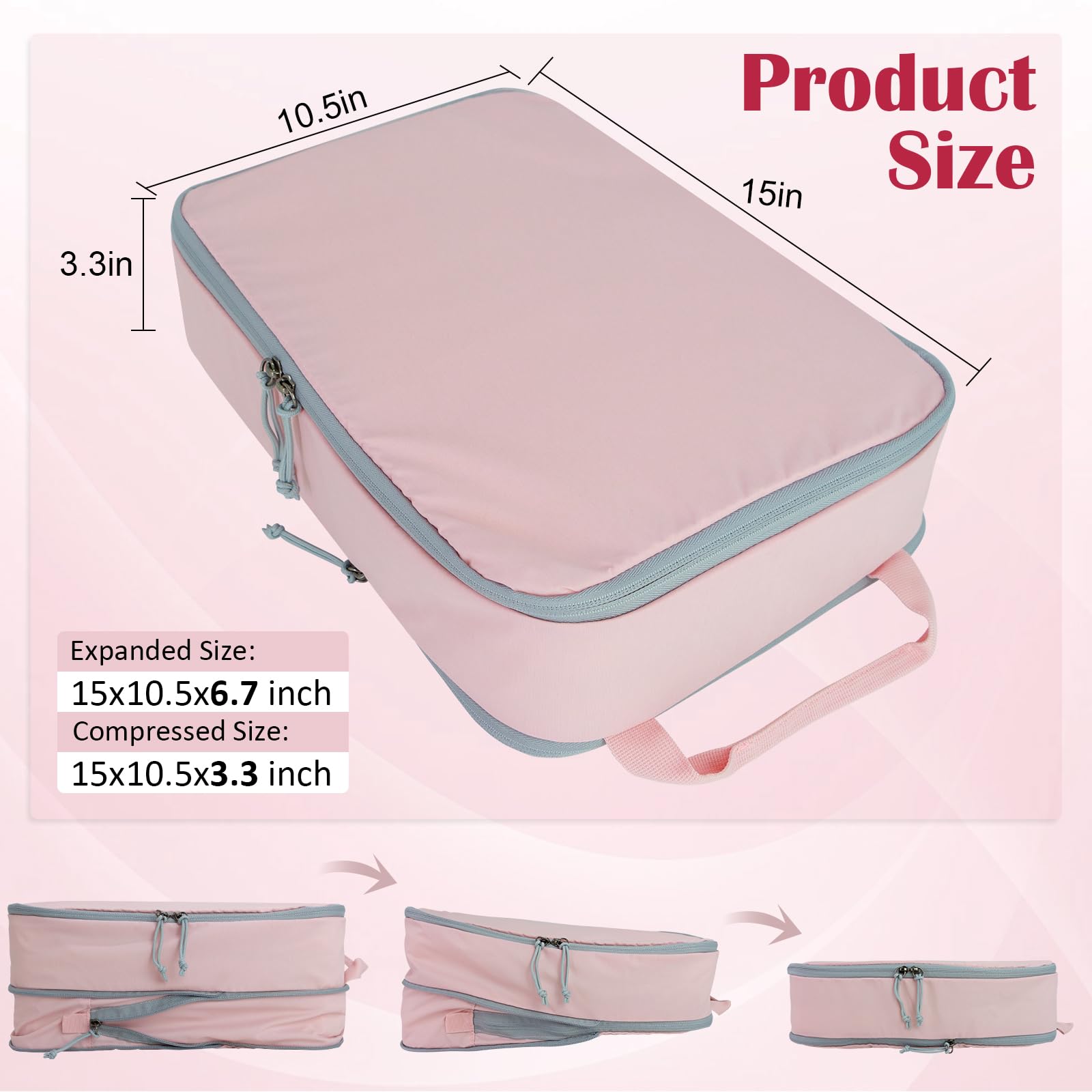 Great Travel Accessories: The compression packing bag is enlarged to 15 x 10.5 x 6.7(3.3) inches to hold more clothes. The ultra-light fabric won't add extra weight to your luggage. Reinforced grab handles make it easy to pull out packed cubes from carry-on luggage or travel backpack. With these travel cubes, you can Travel with ease and efficiency