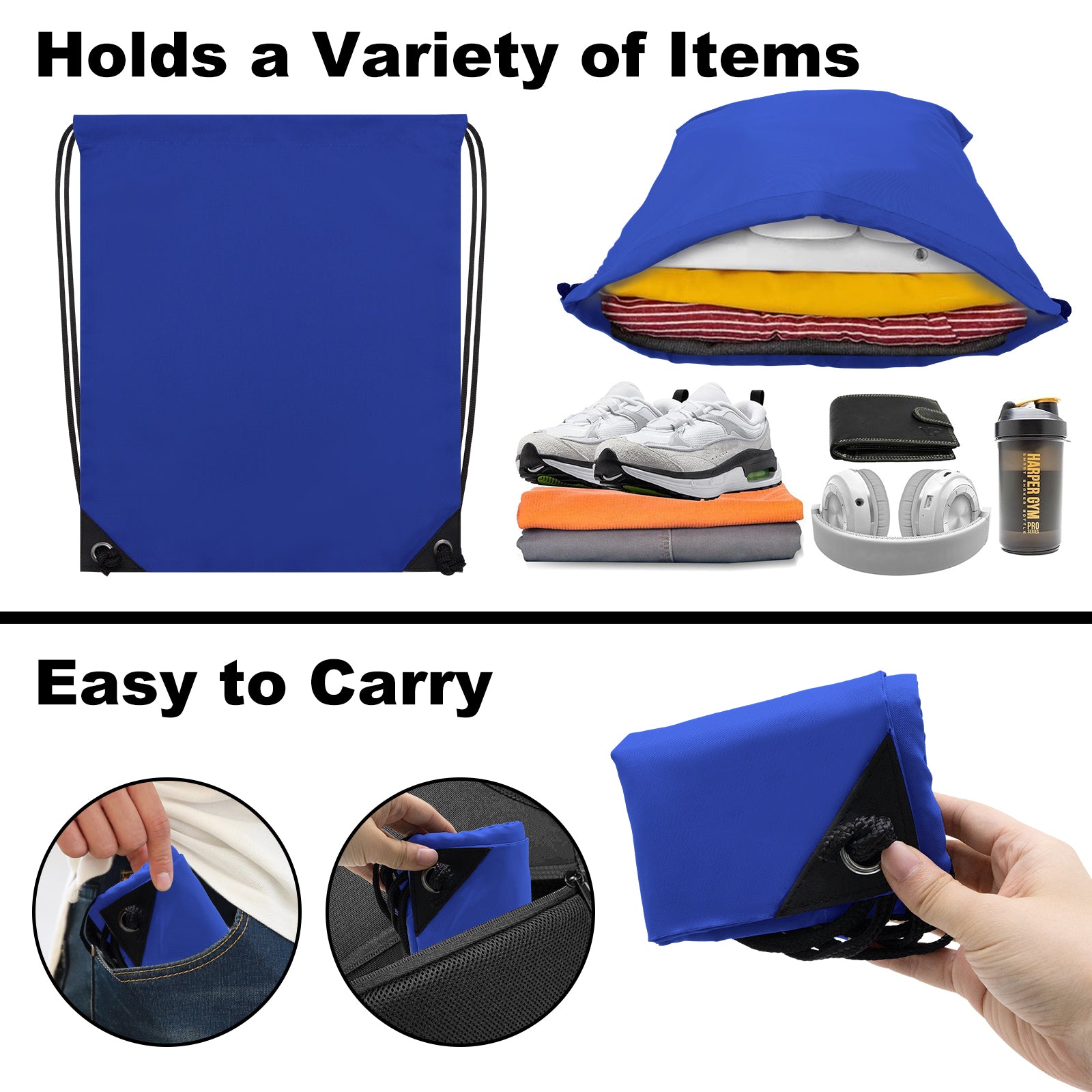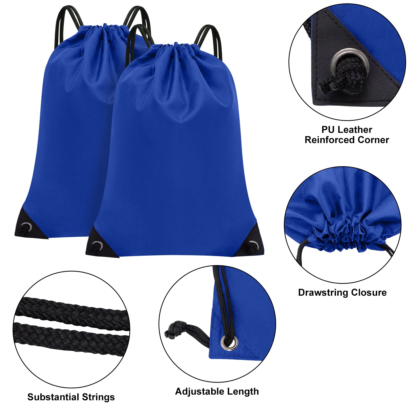 PREMIUM MATERIAL: Made of High-Density Polyester Fabric with PU Leather Reinforced Corner, this drawstring backpack is designed to be durable and long-lasting, ensuring it won't easily break during use