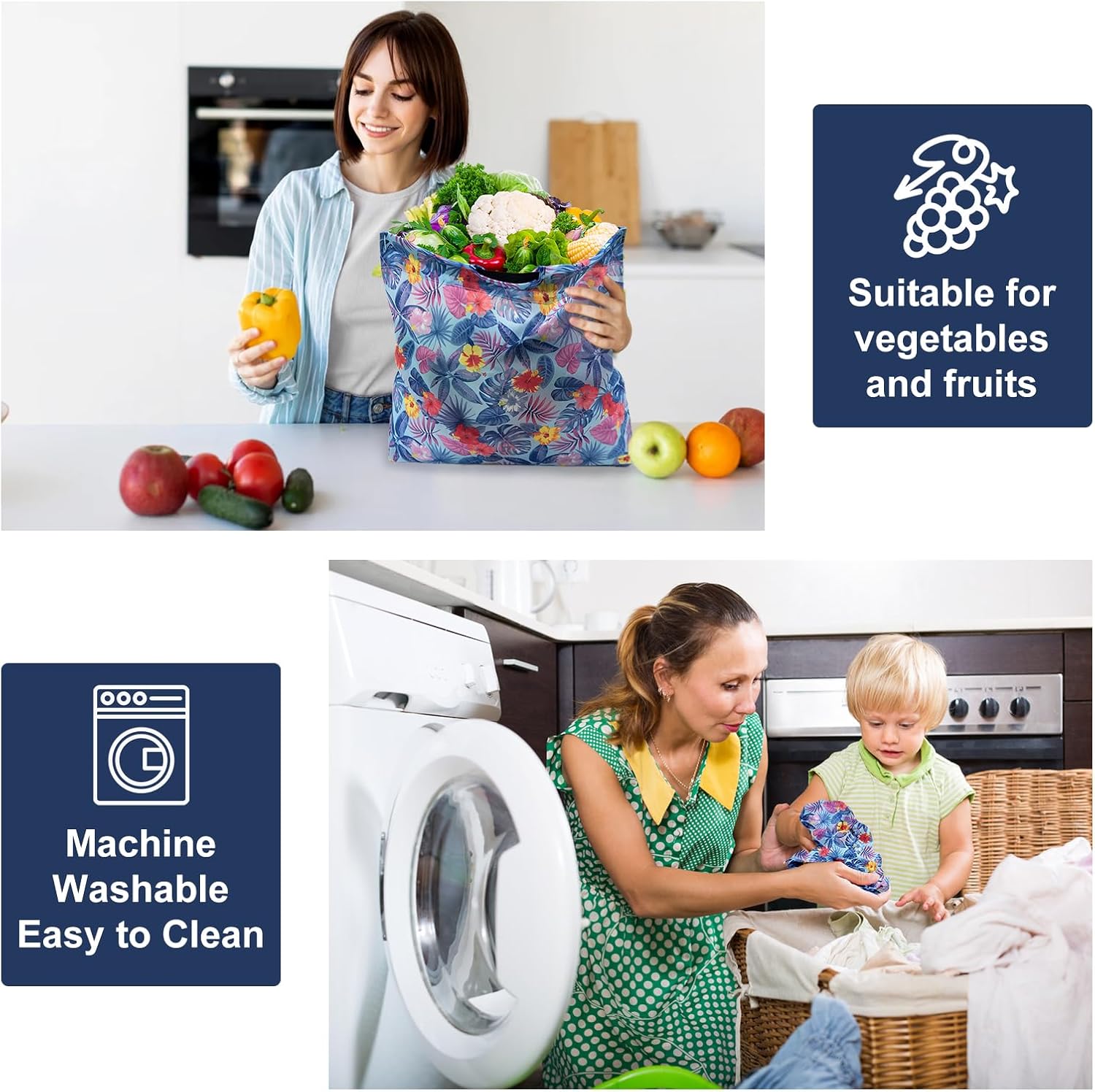 - REUSABLE & MACHINE WASHABLE: Say goodbye to single-use plastic bags! These foldable grocery bags are reusable and can be machine washed. No more worries about sticky messes from items like yogurt, eggs, or meat. Simply toss them in the machine washer for easy cleaning and time-saving