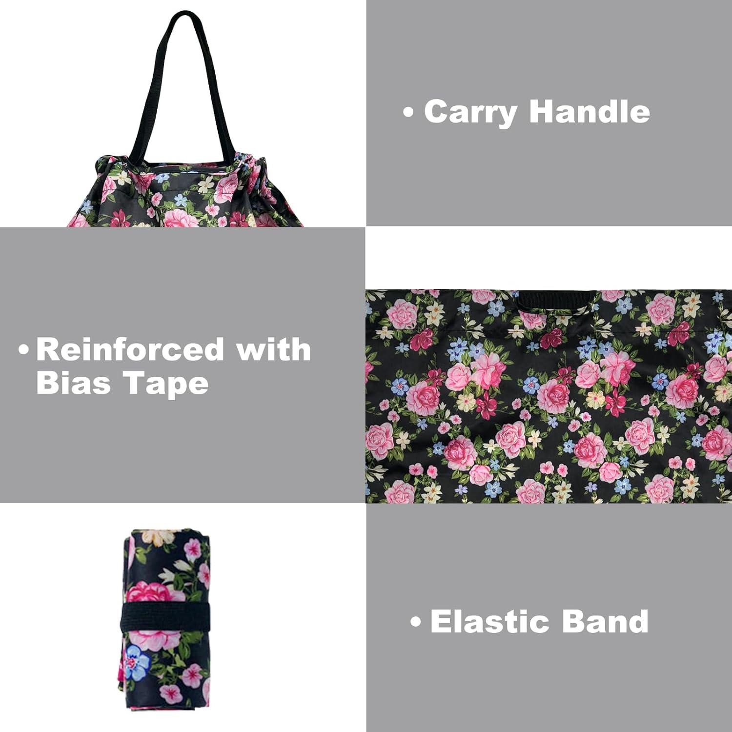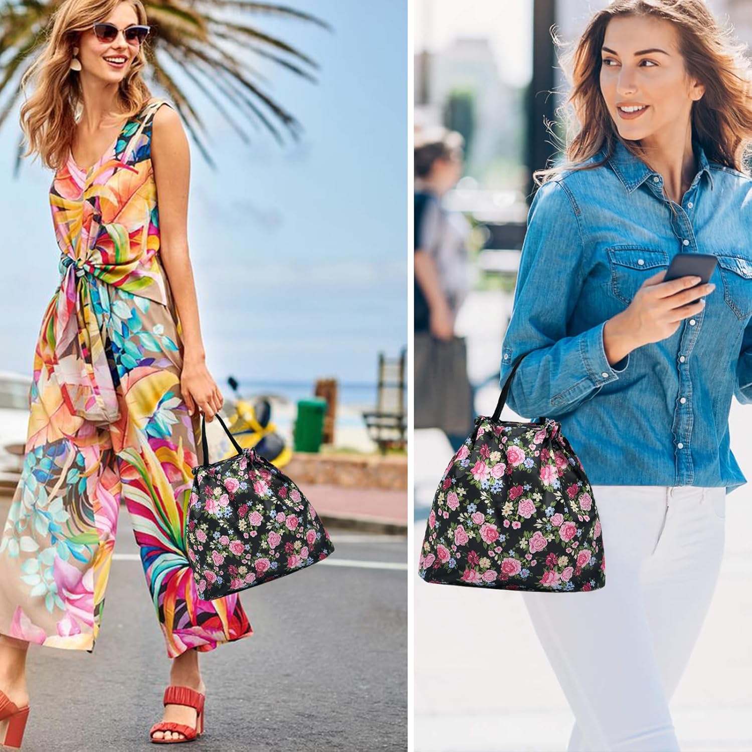 - MULTIPLE USE: The foldable shopping bag comes with long shoulder straps, which allows for hand holding, over arm or over the shoulder toting. It is not only fashionable but also practical. Also, the classic colors make great gifts for holidays. Give these reusable bags to your friends and family to inspire them to use non-plastic bags