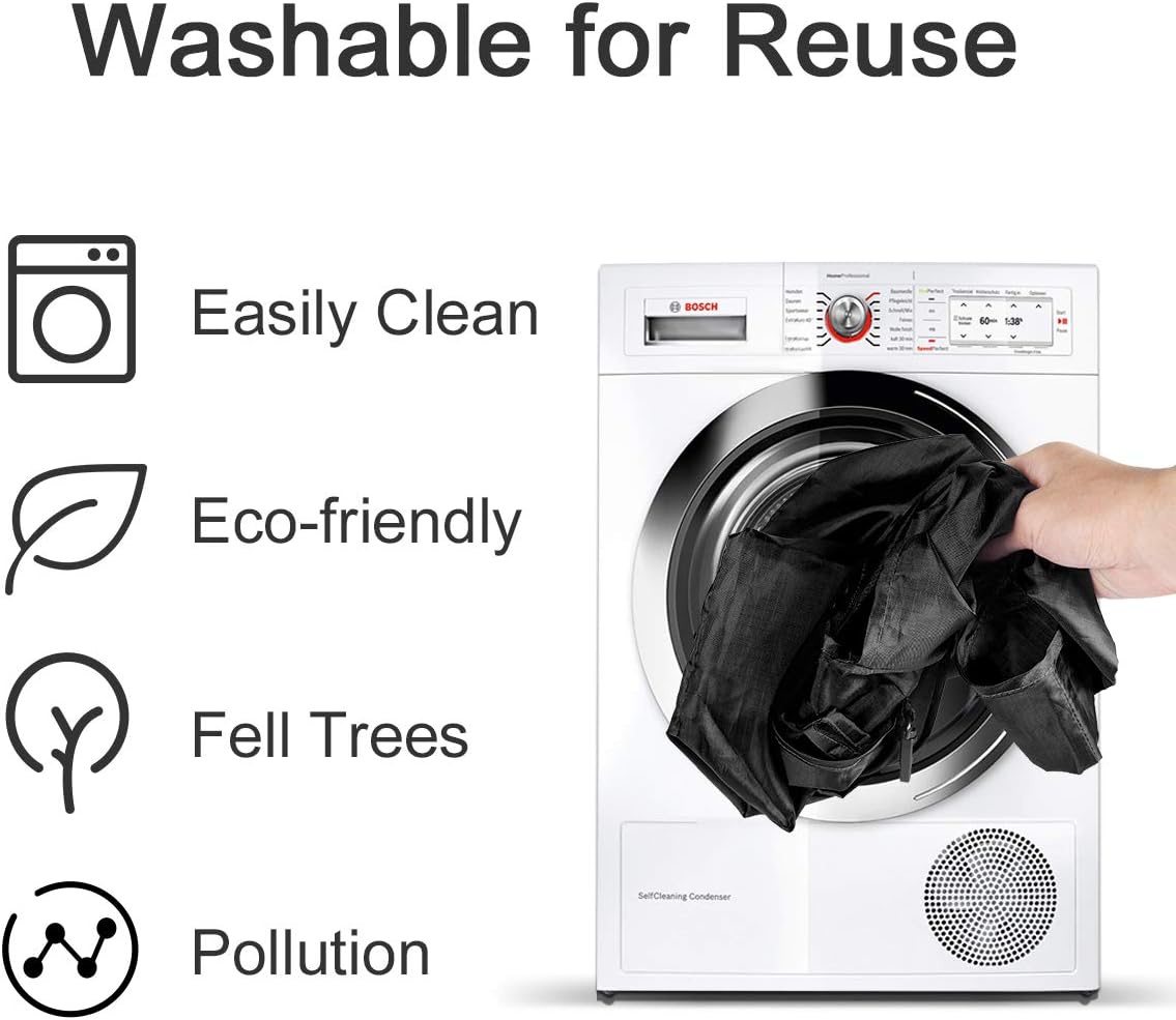 • REUSABLE & MACHINE WASHABLE: Say goodbye to single-use plastic bags! These foldable grocery bags are reusable and can be machine washed. No more worries about sticky messes from items like yogurt, eggs, or meat. Simply toss them in the machine washer for easy cleaning and time-saving
