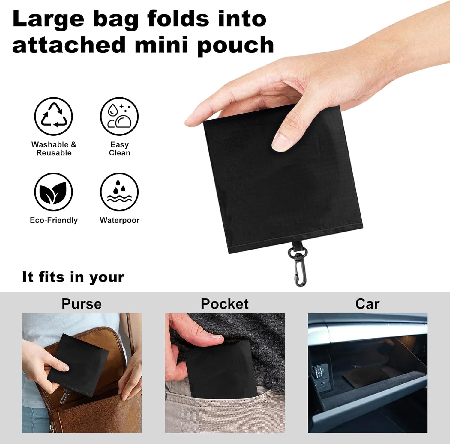 • FOLDABLE & PORTABLE: Our reusable shopping bag can be easily folded into the attached pocket-size pouch You fit in your purse, handbag, backpack or car without taking up too much space. Convenient for anytime use, reducing the need for disposable shopping bags