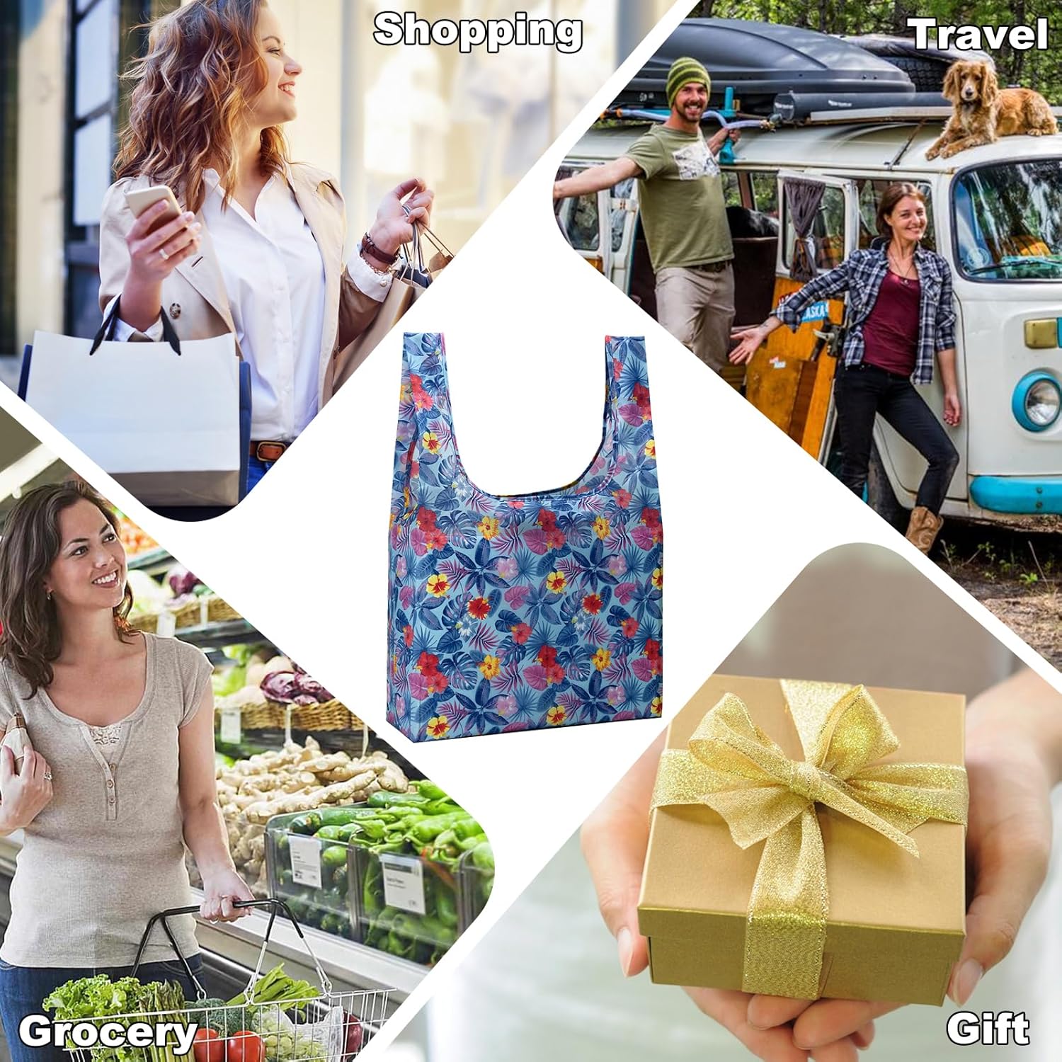 - BULK IN QUANTITY & VERSATILE: Our foldable grocery tote bag are available in 4 colors and suitable for men and women. A set of 5pack can be used for different occasions, including daily shopping, outdoor activities, parties, festivals and more!