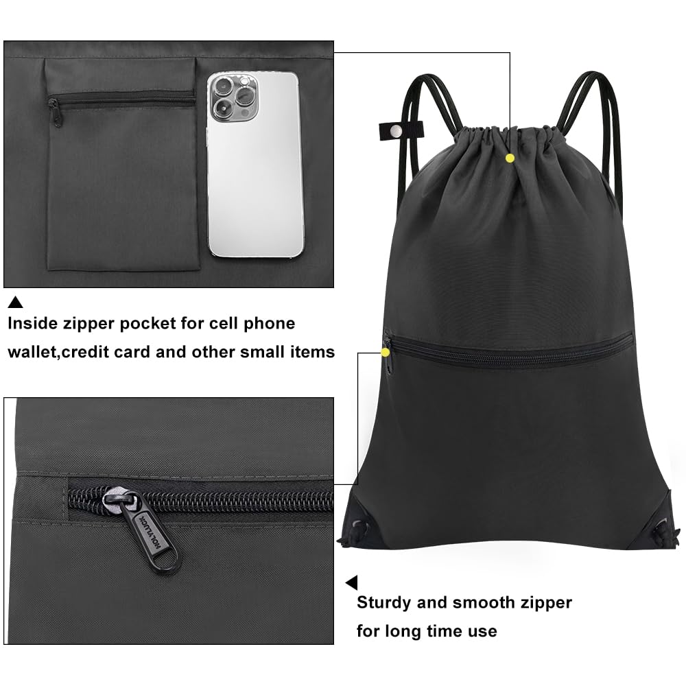 PREMIUM MATERIAL: Made of 100% polyester fiber, this drawstring backpack is not only water-resistant and recyclable but also withstands daily wear and tear