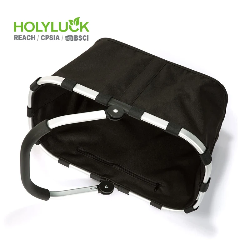 This elegant foldable picnic basket combines practicality with sophisticated design. Featuring a sleek black exterior and reinforced handles, it offers secure storage for picnic essentials while maintaining a stylish appearance. Crafted for effortless outdoor dining, it collapses compactly when not in use.