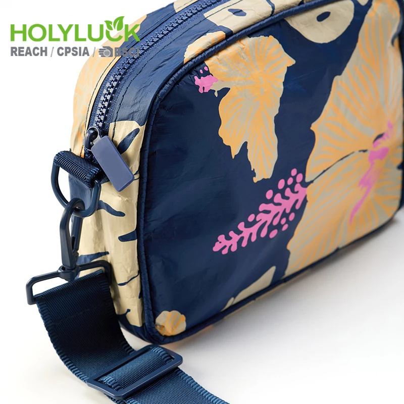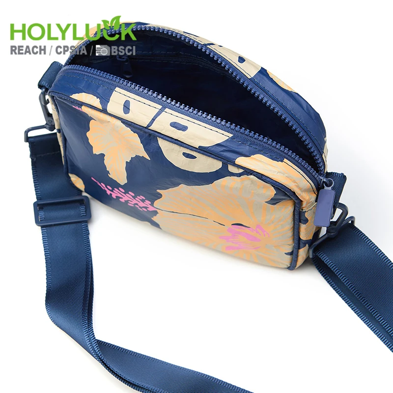 • Custom Print Tyvek Zipper Mini Pouch Cosmetics Paper Beach Small Fanny Pack Tyvek Waterproof Crossbody Bag with Removable Strap
