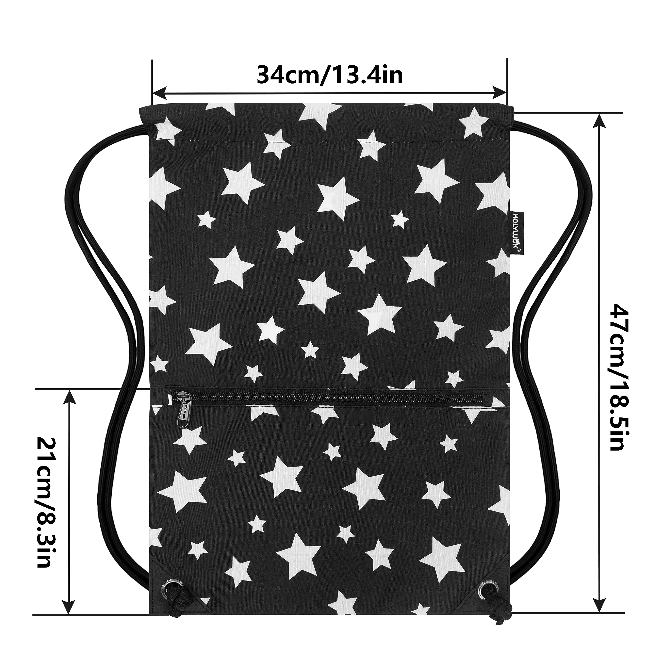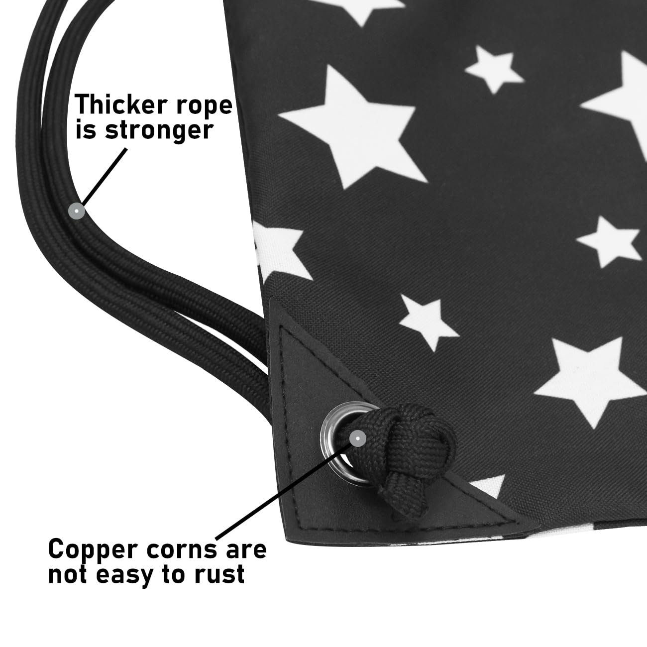 Drawstring Backpack Bag Sport Gym Sackpack Black Background White Star HLC001