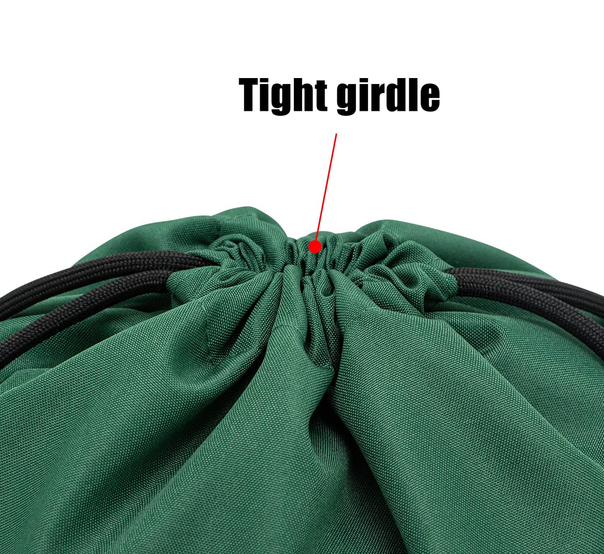 Ergonomic Shoulder Strap: Sturdy draw cord strap allows hands-free carrying while minimizing shoulder strain.