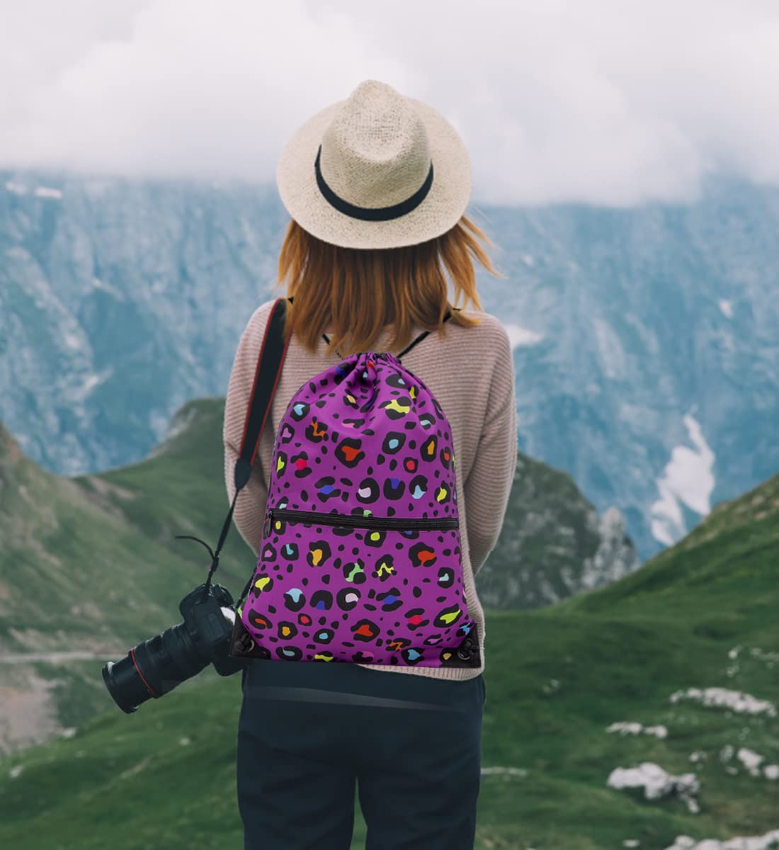 Drawstring Backpack Bag Sport Gym Sackpack Colorful Purple Leopard HLC001