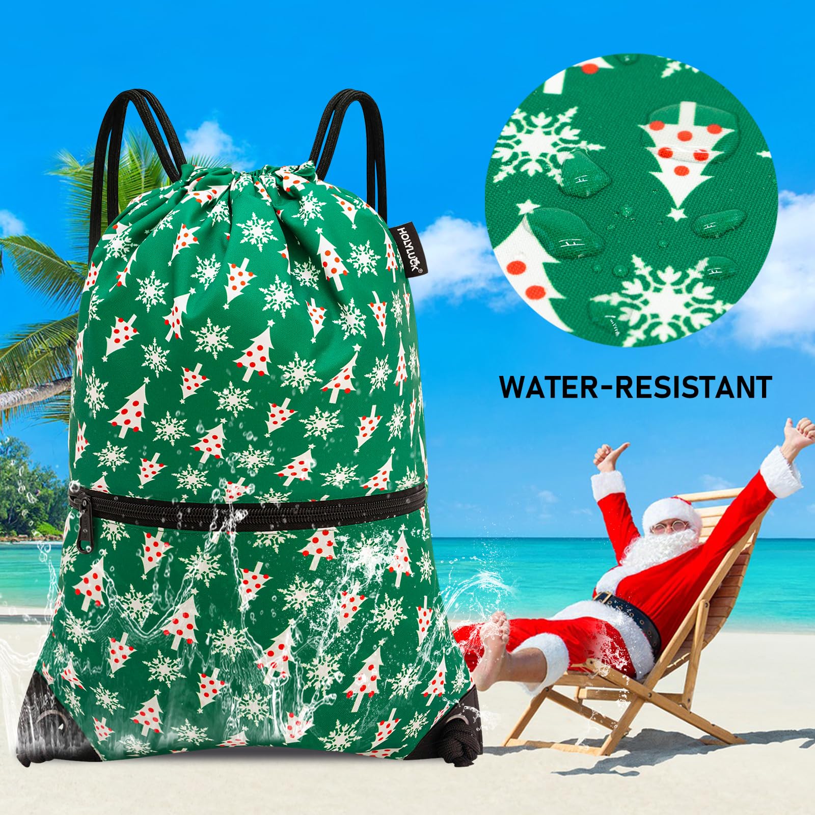 • Holyluck Drawstring Backpack Bag Sport Gym Sackpack Green Christmas HLC001