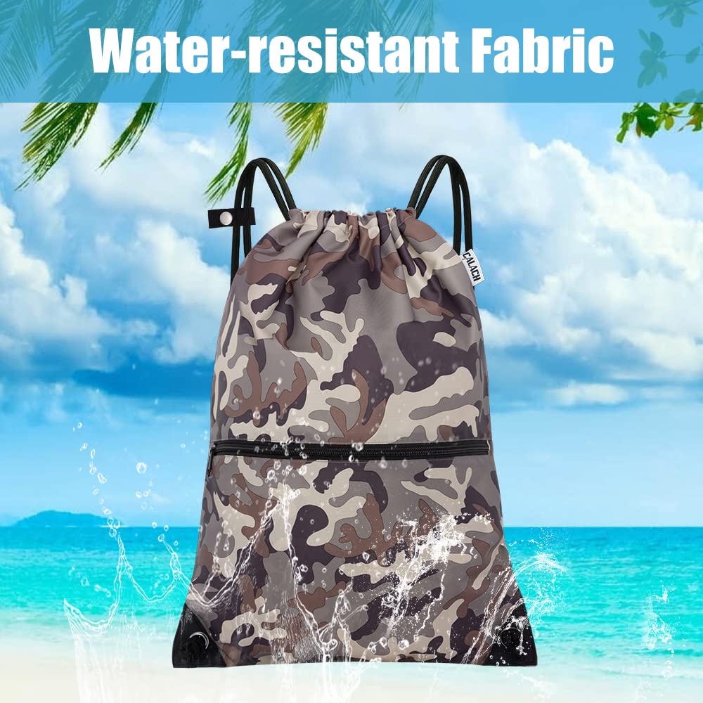 • ENHANCED DURABILITY & COMFORT: CALACH Drawstring Backpack for gym is made of 100% Polyester fiber which is recyclable, water resistant, and durable, withstands daily wear and tear. Drawstring closure makes you store things quickly and take them in and out easily. Thicker drawstrings prevent from digging into your shoulders and help reduce your shoulder burden