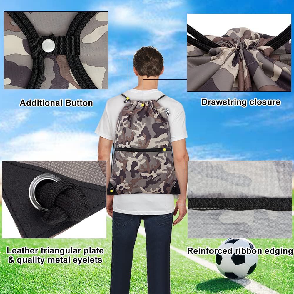 • Drawstring Backpack Sports Gym Bag With Multi Pockets Brown Camo HLC004