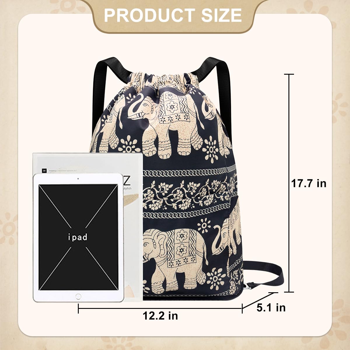 • Drawstring Backpack Sports Gym Bag With Multi Pockets Elephant HLC049