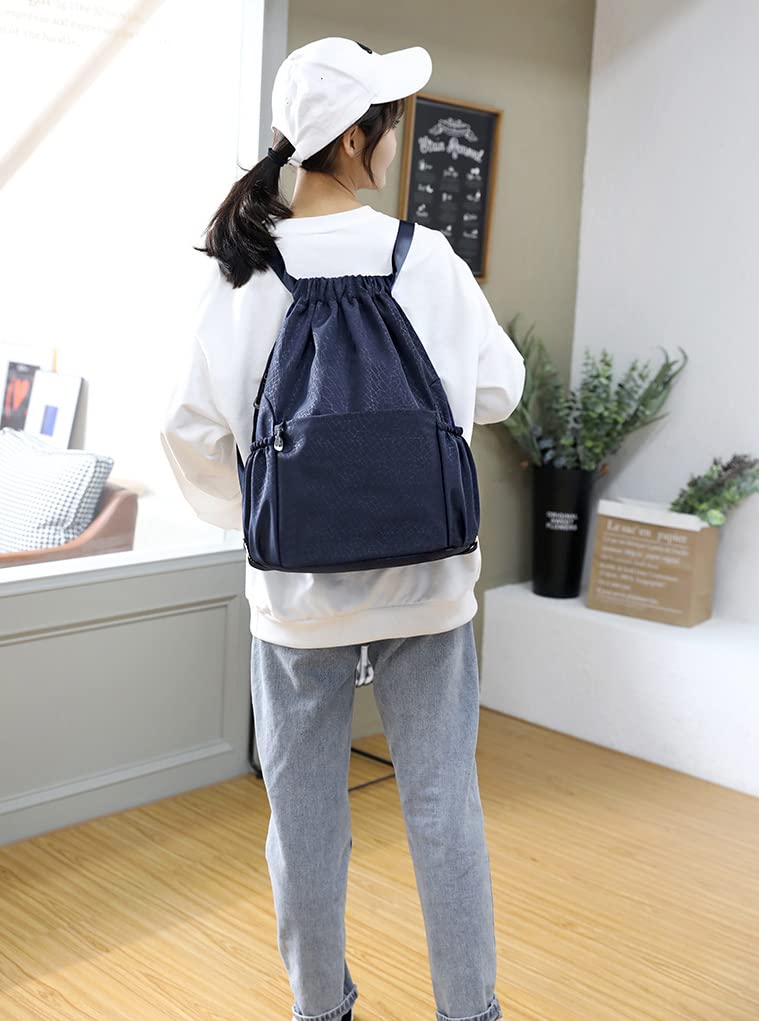 Drawstring Backpack Sports Gym Bag With Multi Pockets Navy HLC049