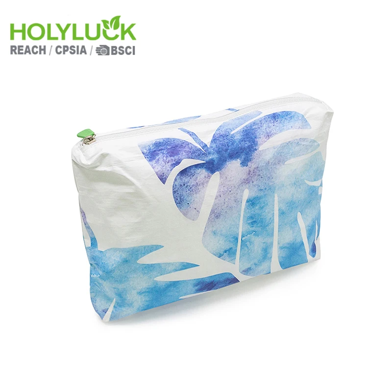 This stylish tyvek paper makeup bag merges artistic elegance with rugged functionality. Featuring a fluid blue-and-white watercolor pattern reminiscent of abstract brushstrokes, its tear-resistant Tyvek-like construction delivers featherweight durability. The streamlined design includes a precision-engineered zipper closure and compact form factor, engineered for seamless integration into purses or luggage while protecting beauty essentials.