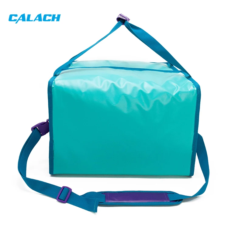 This is a high-quality pizza delivery bag, featuring durable 500D PVC exterior. Designed for optimal functionality, it boasts a large, easy-access opening secured by a flap. Inside, a spacious compartment securely holds pizzas during transport. For enhanced convenience, the bag includes a comfortable shoulder strap.