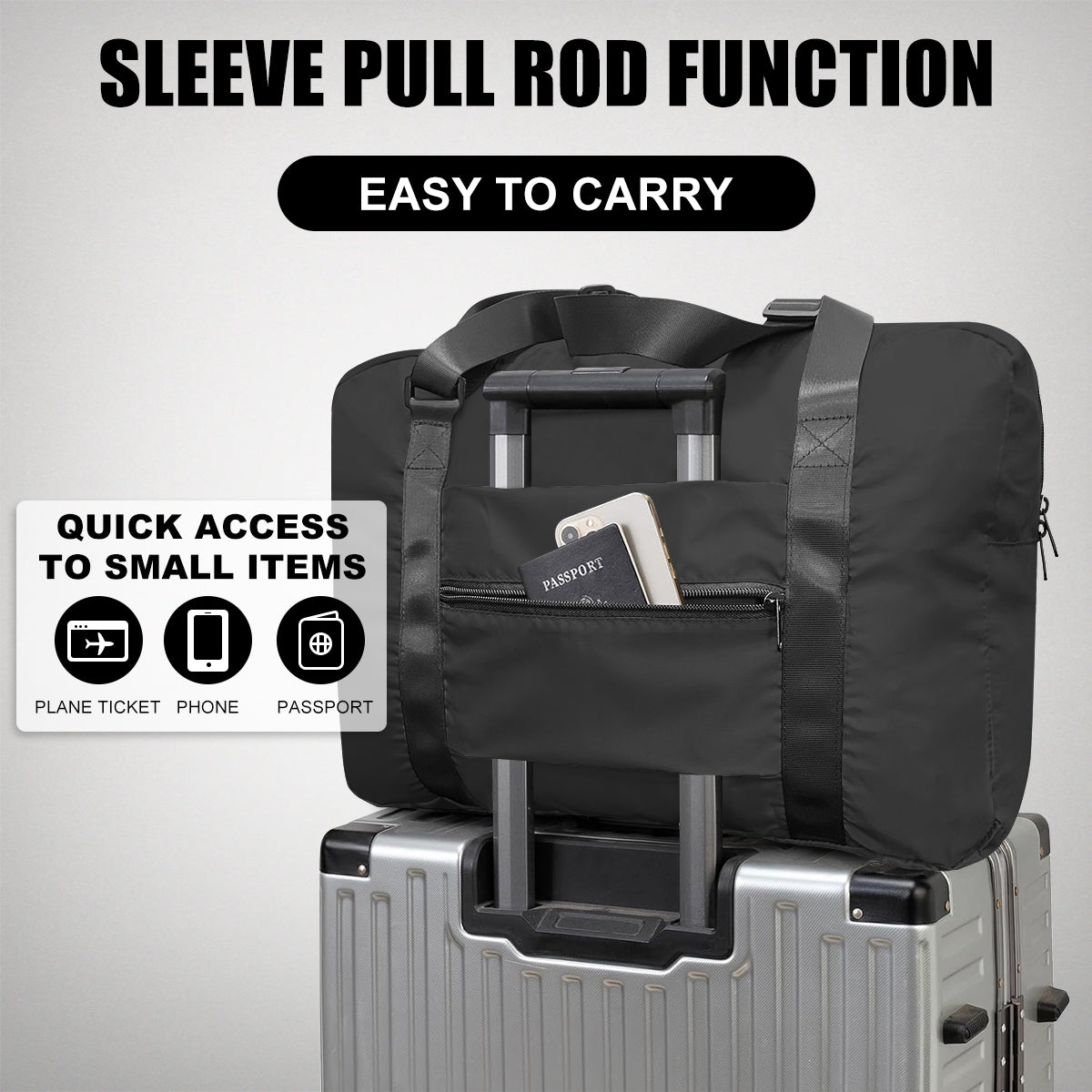 - EASY CARRYING:Its exterior pocket offers quick access to items like tickets, passport and more.The weekender travel bag features a trolley sleeve that effortlessly slides over the handle of a standard suitcase.