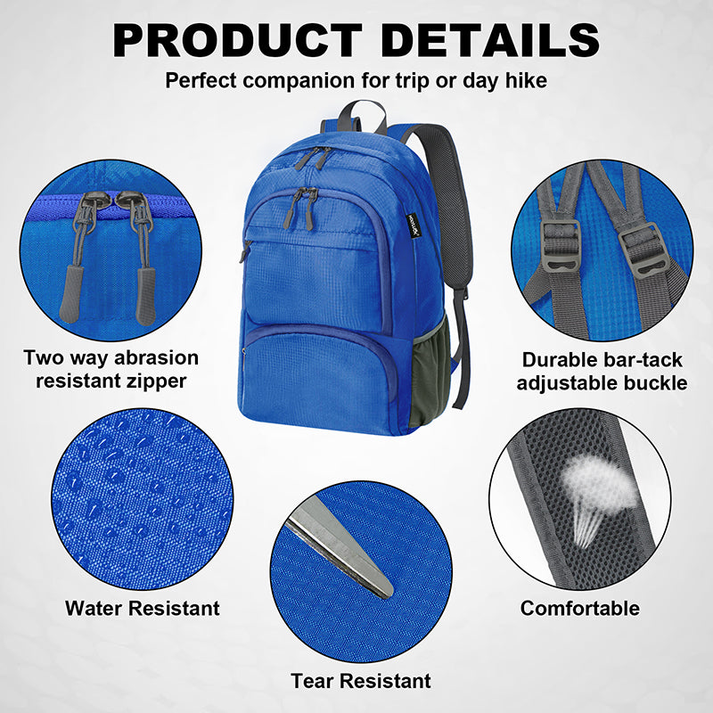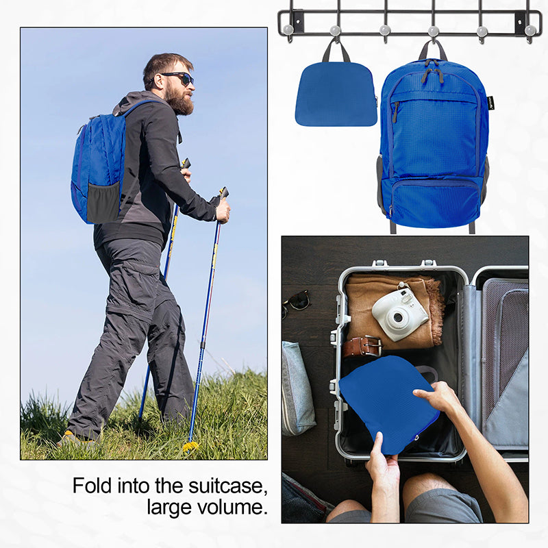 • 20L lightweight packable Hiking Daypack Foldable Backpack HLC410 Blue