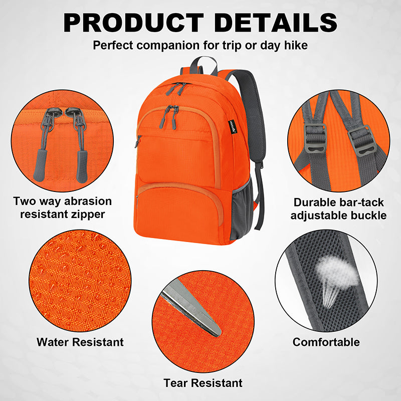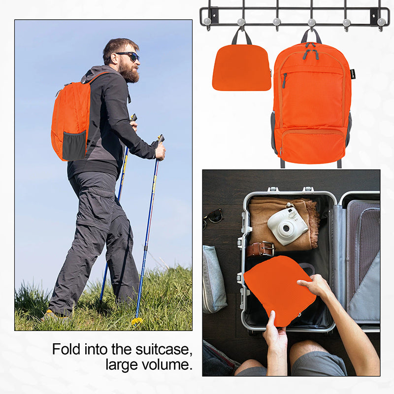 Foldable and Lightweight:Weight only 0.57 (lb). The hiking backpack is easy to carry . It can be folded into the wallet size. and sorted in suitcase, purse, etc. Perfect for travel, camping, and outdoor adventures.