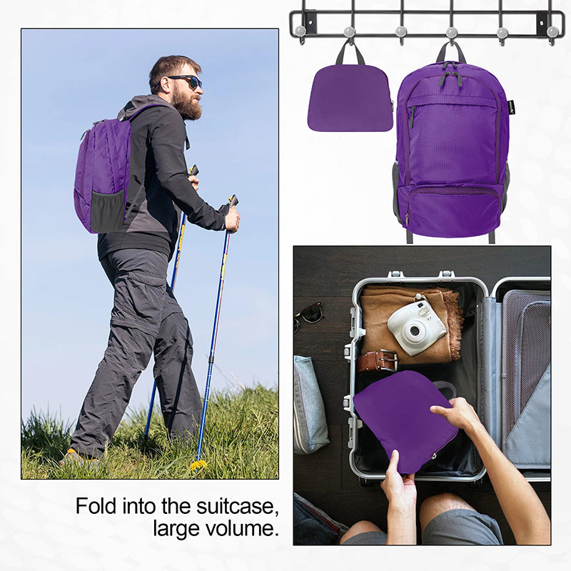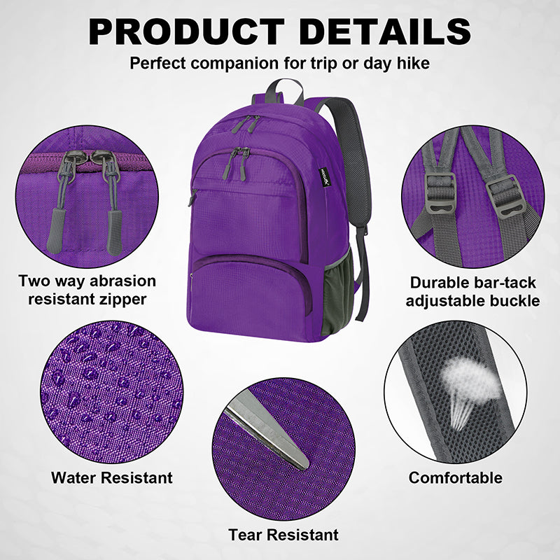 • 20L lightweight packable Hiking Daypack Foldable Backpack HLC410 Purple