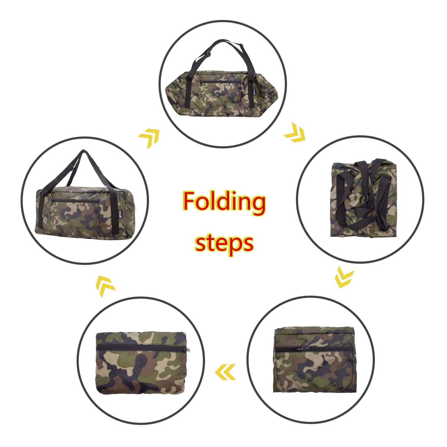 【Large Capacity and Foldable】It's unfolded Size: 27 x 10.5 x 13 inch, has about 60L capacity to use as a luggage bag in case that your suitcase swells. When not use it can be folded into a really small compact (only 10 x 8 x 2 inch) taking up so little space.