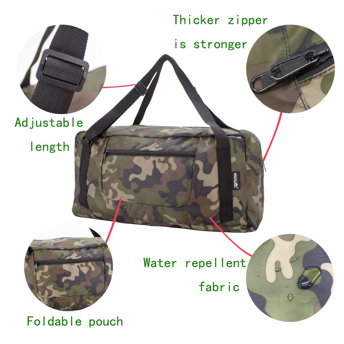 【Reasonable Design】This duffle is featured with internal multiple pockets, adjustable& removable long shoulder strap and sleeve on the back to slip it over luggage handles to offer you better usage experience.