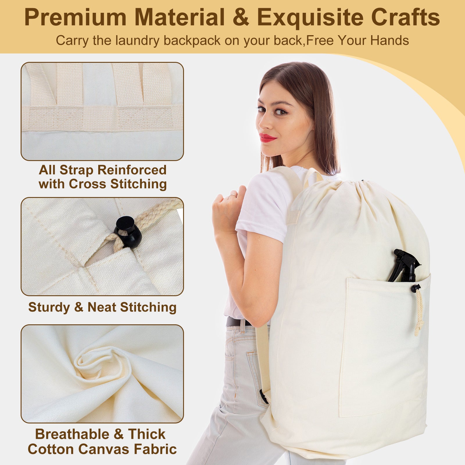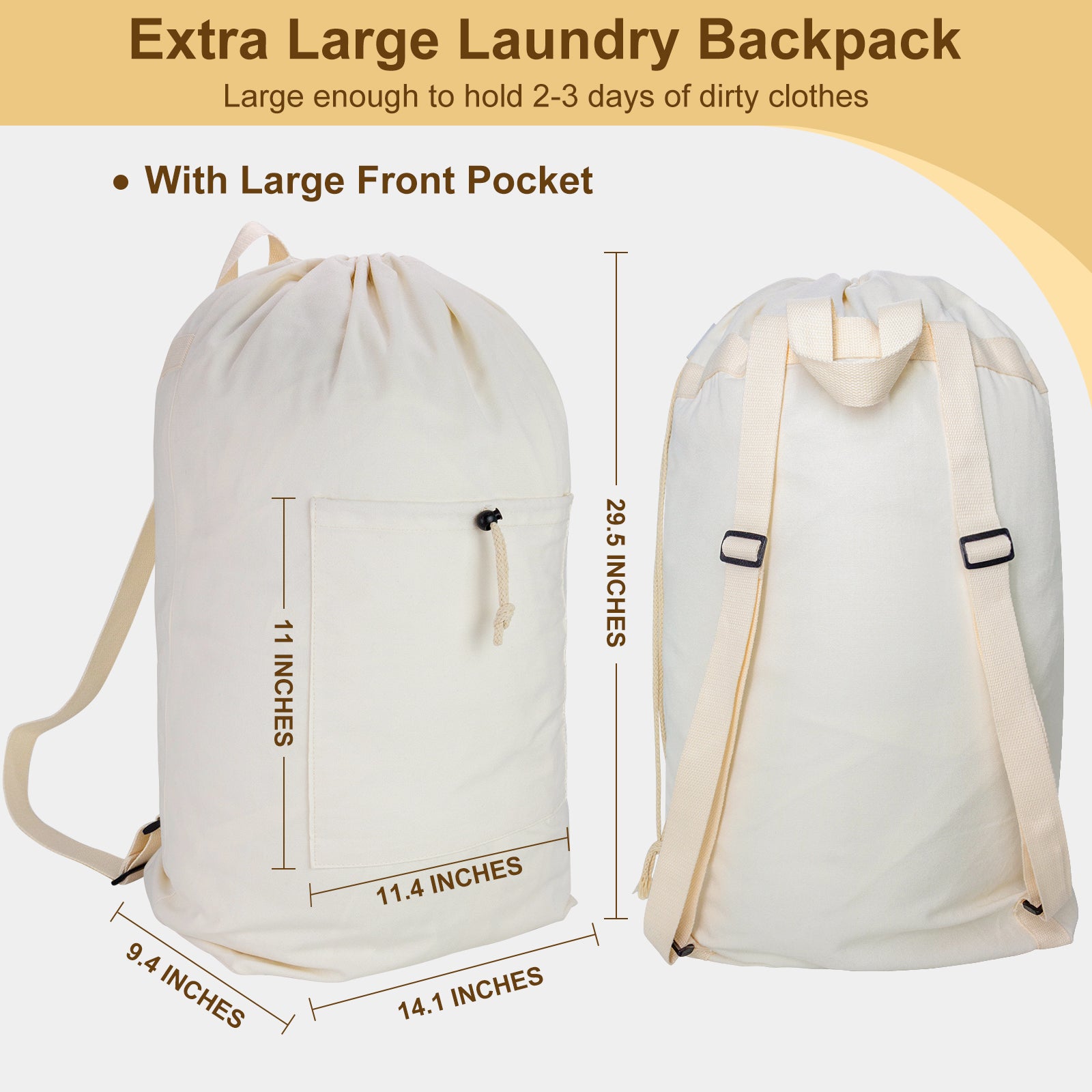 • Laundry Bag Backpack, Canvas Laundry Bag with Straps & Large Front Pocket HRS13