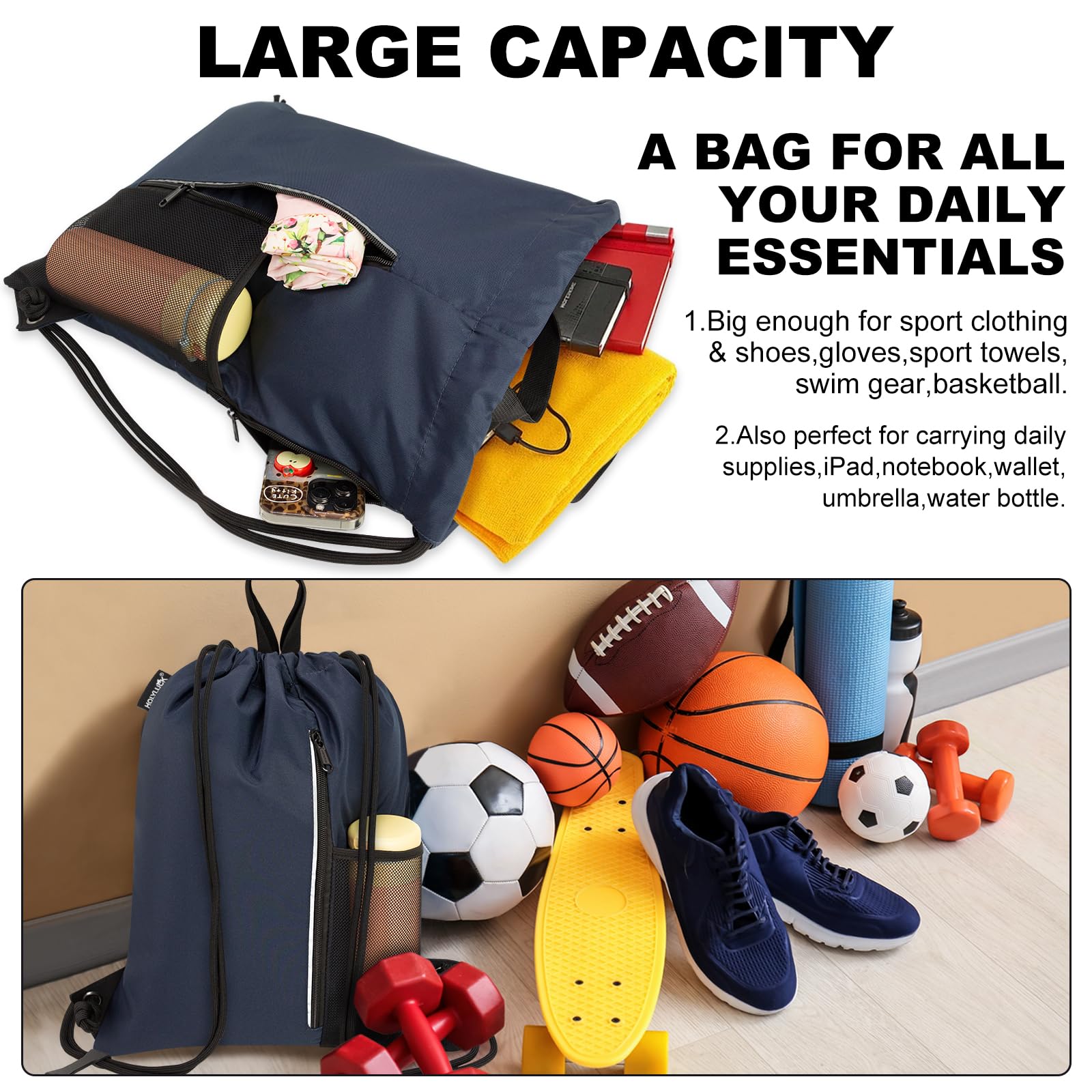 • SUITABLE FOR VARIETY OF OCCASIONS: This bag is lightweight and enough to carry a pair of shoes, bottle, an umbrella, a few books, lunch or clothing. It's perfect for gym, sport, yoga, dance, travel, carry-on, luggage, camping, hiking, team work, training and more! It's also a fabulous gift idea for everyone.