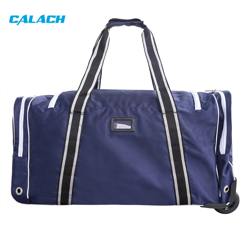 Engineered for elite performance, this professional-grade hockey bag combines rugged durability with intelligent organization. Crafted from abrasion-resistant black fabric with reinforced stress points, it features specialized compartments for sticks, pads, helmets, and skates. The ventilated design and moisture-wicking lining protect equipment integrity during transport, while the bold team logo projects authentic athletic identity.