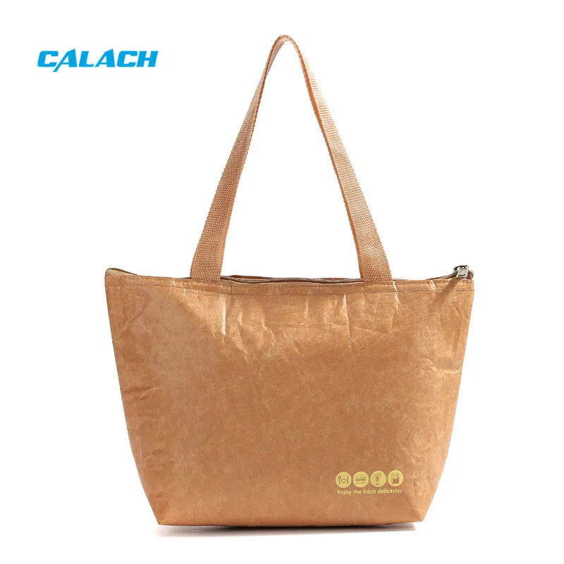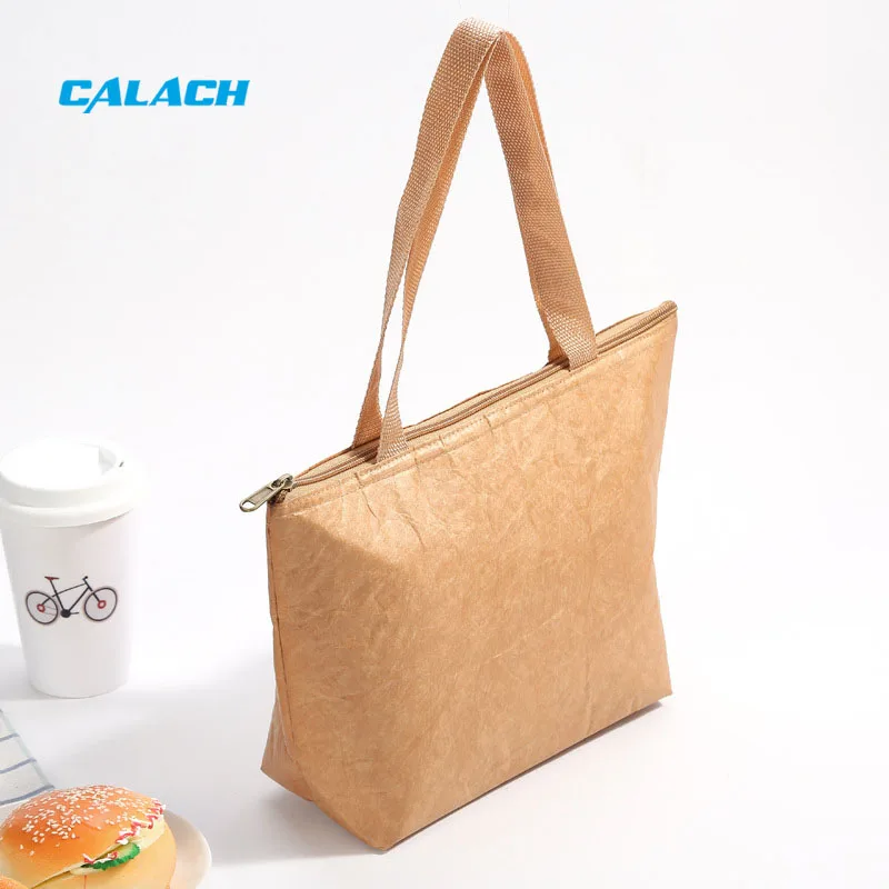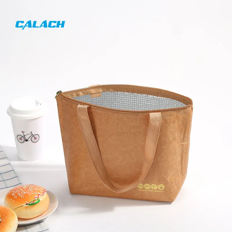 Tyvek Paper Reusable Earth Friendly Keep Food Warm Freezable Brown Dupont Tyvek Lunch Bag with Foil