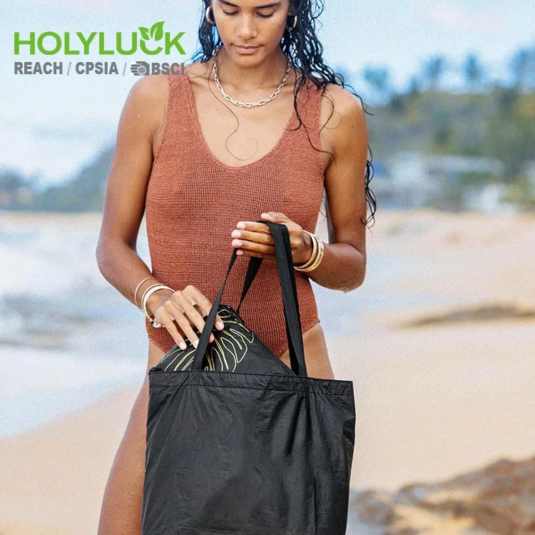 • Waterproof Tear Resistant Custom Printing Ecofriendly Dupont Tyvek Paper Black Day Tripper Reversible Tyvek Tote Bag with Straps
