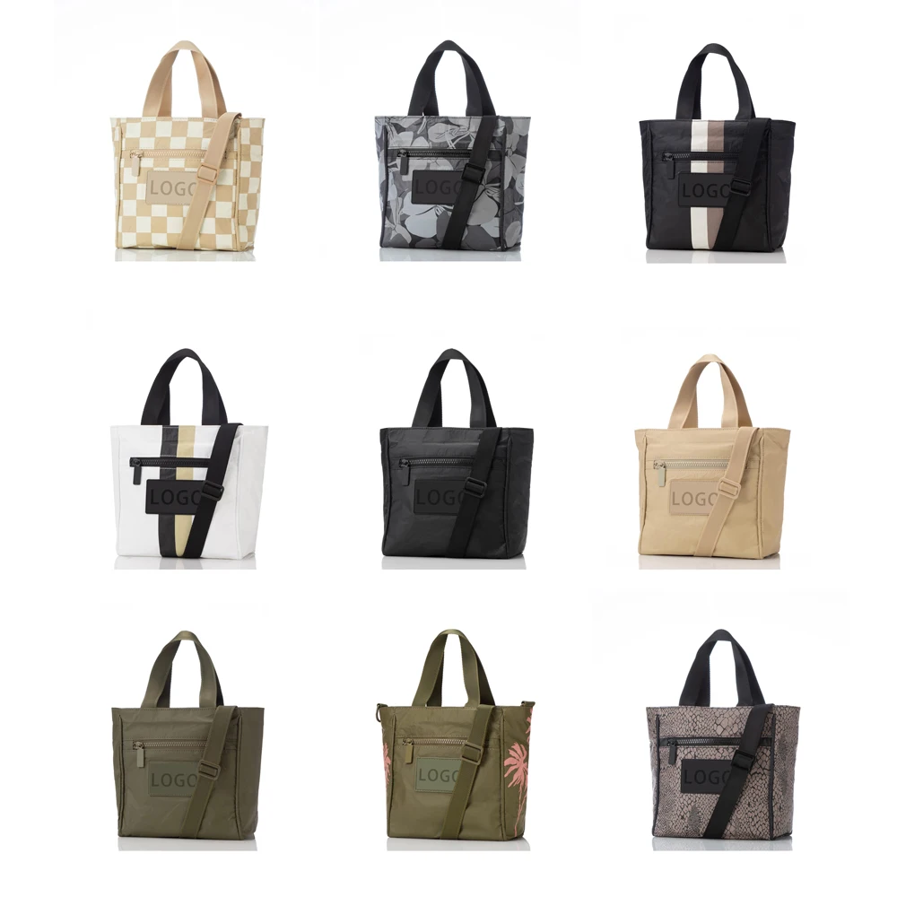 This elegant tyvek paper tote bag combines artistic design with robust functionality. it offers a sophisticated accessory for daily use. Reinforced black handles ensure comfortable carrying, while a front zippered pocket provides quick access to essentials. Crafted from durable TYVEK paper, its foldable structure maintains shape integrity while resisting tears, moisture, and daily wear.