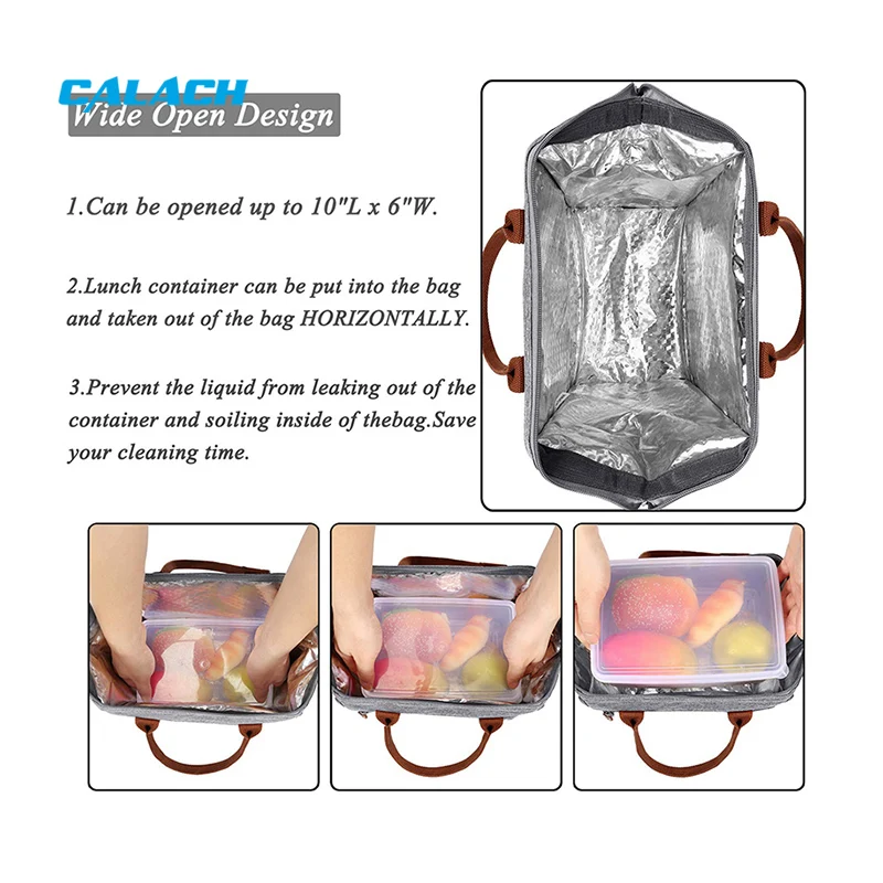 • Women Waterproof Ripstop Insulated Durable Nylon Wide-open Grey Lunch Box Bag for Office Beach Picnics
